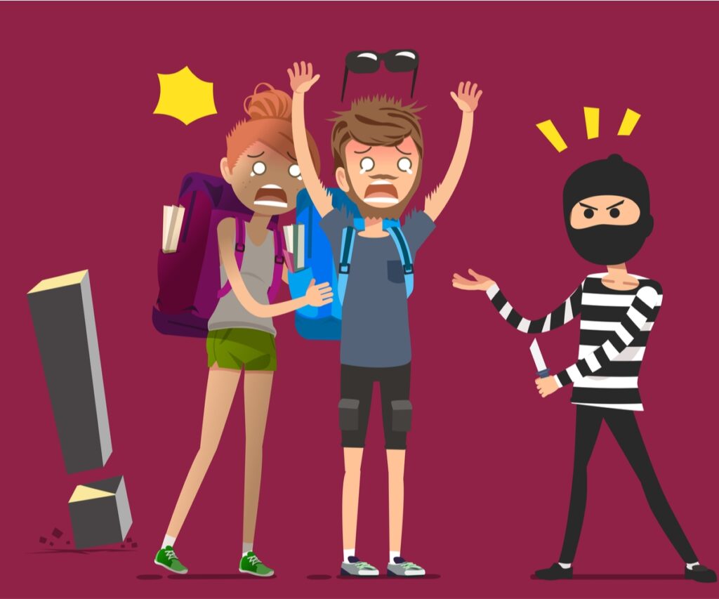 ⇒犯人たちは生活に困って犯しているケースがほとんどなので、素直に金品を渡してあげると離れます。